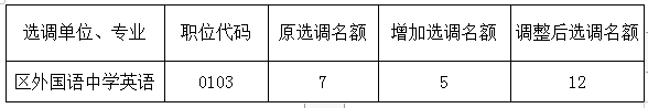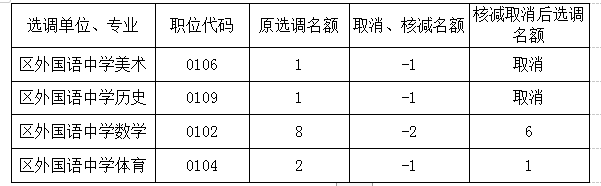 平橋區(qū)外國(guó)語(yǔ)中小學(xué)公開(kāi)選調(diào)教師報(bào)名工作已結(jié)束,按照《平橋區(qū)外國(guó)語(yǔ)中小學(xué)公開(kāi)選調(diào)教師公告》“報(bào)名人數(shù)與擬選調(diào)人數(shù)的比例應(yīng)達(dá)到3:1,達(dá)不到比例要求的,相應(yīng)核減擬選調(diào)人數(shù)(所核減職位數(shù)額調(diào)整到相應(yīng)學(xué)段報(bào)名人數(shù)最多的職位)”。部分崗位因報(bào)名人數(shù)不足需取消(或核減)和調(diào)整,現(xiàn)予以公告。
