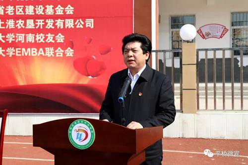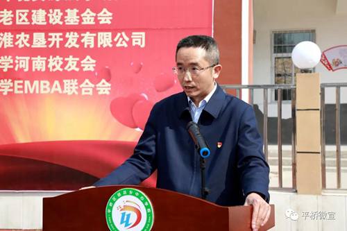 3月17日,中國人民大學(xué)河南校友會(huì)第三期“信陽老區(qū)捐資捐書助學(xué)”活動(dòng)在胡店鄉(xiāng)中心校舉行。省老促會(huì)執(zhí)行會(huì)長、省委原副秘書長兼省直工委書記王群,省人大常委會(huì)委員、省人大農(nóng)委副主任委員張成智,市委常委、市委秘書長謝天學(xué),平橋區(qū)委副書記、代區(qū)長董立淳等出席儀式。儀式由區(qū)政府副區(qū)長耿傳清主持。