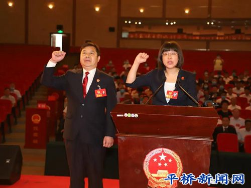 新當選的平橋區(qū)監(jiān)察委員會主任李金娥和平橋區(qū)人民法院院長李振進行了憲法宣誓。