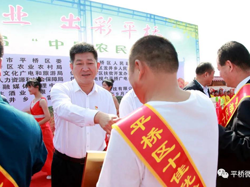 副區(qū)長徐明春在致辭中說,今年是脫貧攻堅決戰(zhàn)之年、全面建成小康社會決勝之年、實施“十三五”規(guī)劃收官之年,區(qū)委、區(qū)政府深入貫徹落實習近平總書記重要講話精神,按照中央、省、市部署,統(tǒng)籌推進疫情防控和經(jīng)濟社會發(fā)展,逐步恢復農(nóng)業(yè)農(nóng)村生產(chǎn)生活秩序,農(nóng)業(yè)持續(xù)變強、農(nóng)村持續(xù)變美、農(nóng)民持續(xù)增收。這些成績的取得,飽含著全區(qū)農(nóng)民朋友的辛勤汗水,凝聚著廣大農(nóng)業(yè)工作者的集體智慧。“農(nóng)民豐收節(jié)”是農(nóng)民朋友的專屬節(jié)日,通過組織文藝匯演、產(chǎn)品展銷等系列慶;顒樱故拘聲r代平橋農(nóng)民的精神風貌,營造全民參與享豐收的節(jié)日氛圍,推動全社會更加關愛農(nóng)民、關心農(nóng)業(yè)、關注農(nóng)村。