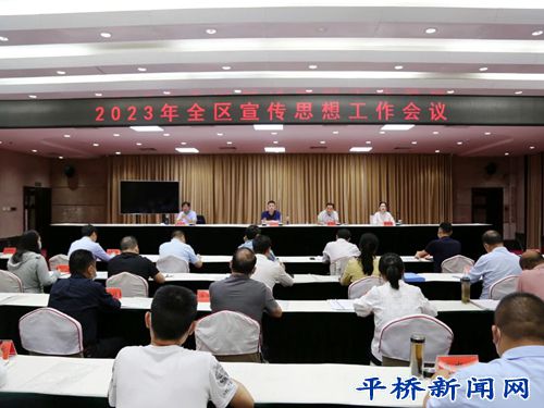 會議指出,今年宣傳思想工作的總體要求是:堅持以習近平新時代中國特色社會主義思想為指導,聚焦學習宣傳貫徹黨的二十大精神這條主線,聚焦用新時代黨的創(chuàng)新理論武裝黨員、教育人民、指導實踐這個根本任務,緊緊圍繞舉旗幟、聚民心、育新人、興文化、展形象建設文化強區(qū),堅持穩(wěn)中求進、自信自強、守正創(chuàng)新、敢于斗爭,突出思想武裝、求實求效、改革創(chuàng)新、結果導向、統籌謀劃、長效機制,緊扣“1335”工作布局見行見效,全面推進宣傳思想工作攻堅克難、奮勇爭先,為加快建設社會主義現代化平橋提供堅強思想保證和強大精神力量。