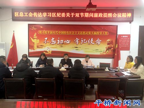 為加強黨風廉政建設,貫徹落實中央八項規(guī)定精神,營造風清氣正的節(jié)日氛圍,12月31日下午,平橋區(qū)總工會召開黨組(擴大)集體學習會議暨雙節(jié)廉政提醒會。